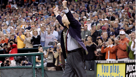 Watch Ernie Harwell address the fans and a special video tribute